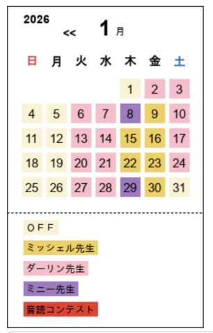 1月も、ABCの明るく楽しい先生たちと一緒に、