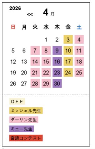 4月のオンラインレッスンカレンダーを更新しました🌸